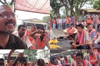 रायपुर,,अल्ट्राटेक बैकुंठ मे श्रमिकों का आंदोलन लगातार 8 वे दिन मंत्री टंकराम वर्मा व JCP के अध्यक्ष अमित बघेल की दहाड़ के साथ हुई एंट्री।