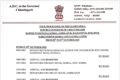 सरगुजा,,राज्यपाल रमेन डेका का सरगुजा संभाग का दौरा कल से शुरू, दो दिन में छह ज़िलों का निरीक्षण कार्यक्रम।