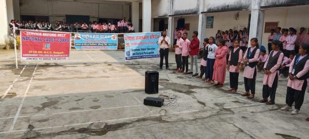 उल्लेखनीय है कि जिला निर्वाचन अधिकारी के निर्देशन एवं स्वीप नोडल अधिकारी जिला पंचायत सीईओ के मार्गदर्शन में निरंतर मतदाता जागरूकता कार्यक्रम आयोजित किये जा रह हैं। इसी कड़ी में शासकीय महाविद्यालय बलरामपुर में अंतर्गत मतदाता जागरूकता विषय पर नुक्कड़ नाटक का आयोजन किया गया। जिसका उद्देश्य युवाओं में लोकतांत्रिक चेतना, नागरिक दायित्व एवं निर्वाचन प्रक्रिया के प्रति जागरूकता लाना है। कार्यक्रम में महाविद्यालय के प्राध्यापकगण, कर्मचारी एवं छात्र-छात्राएं उपस्थित रहे।