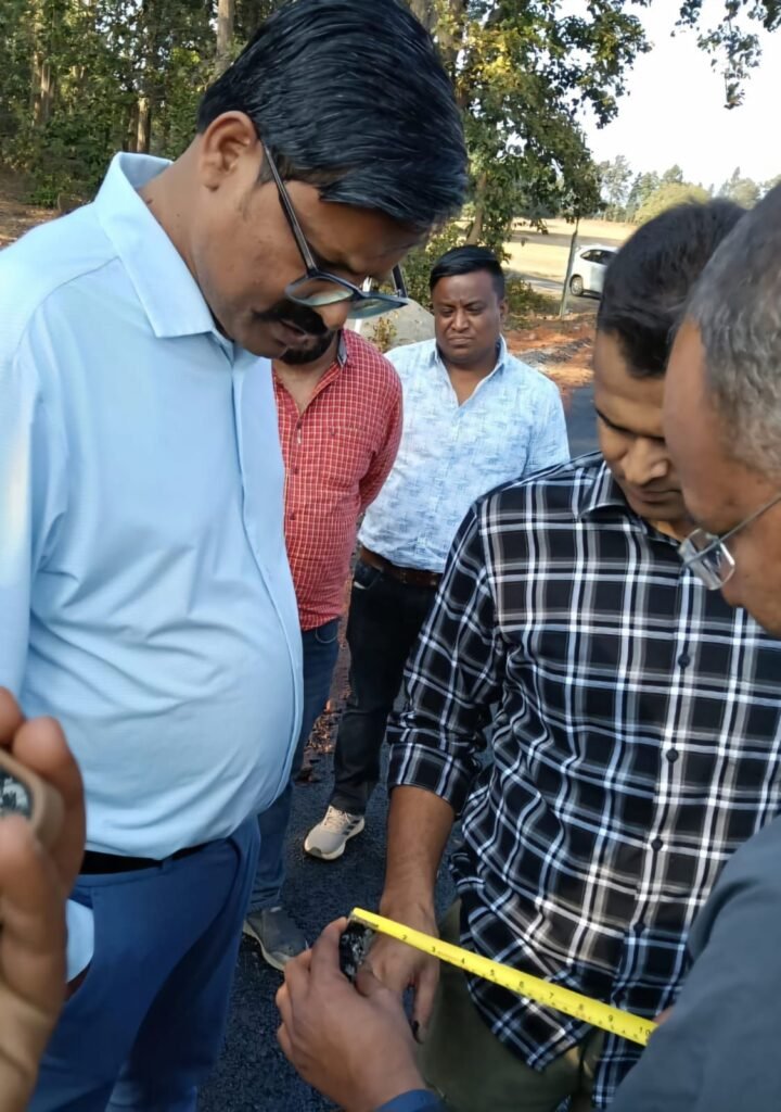 बलरामपुर,14 फरवरी 2026/  कलेक्टर श्री राजेन्द्र कटारा एवं पुलिस अधीक्षक श्री वैभव बेंकर ने संयुक्त रूप से विकासखंड शंकरगढ़ के ग्राम भरतपुर अंतर्गत प्रधानमंत्री जनमन योजना के तहत निर्माणाधीन गम्हार डीह से सरईडीह कोरवापारा तक सड़क निर्माण कार्य का निरीक्षण कर प्रगति का जायजा लिया। निरीक्षण के दौरान कलेक्टर श्री कटारा ने निर्माण कार्य की गुणवत्ता का आंकलन किया। उन्होंने संबंधित अधिकारी और ठेकेदार को निर्धारित मानकों के अनुरूप ही क्रियान्वयन सुनिश्चित करने के निर्देश दिए।