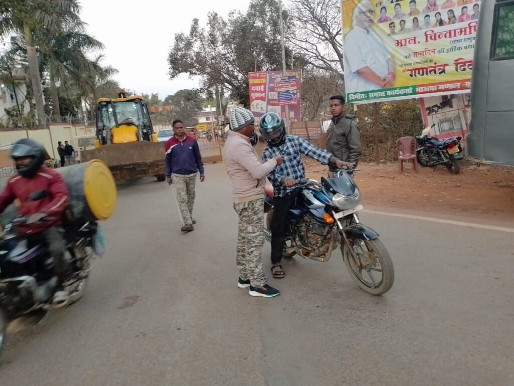 एसपी वैभव बैंकर के दिशा निर्देश पर एसडीओपी आशीष कुमार कुंजाम के मार्गदर्शन पर एक्सीडेंट कम करने कुसमी थाना प्रभारी विरासत कुजूर की टीम के द्वारा सख्त चेकिंग अभियान जारी।