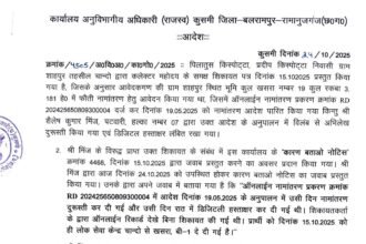 बलरामपुर,,तहसील चांदो के अंतर्गत पटवारी शैलेष कुमार मिंज निलंबित।