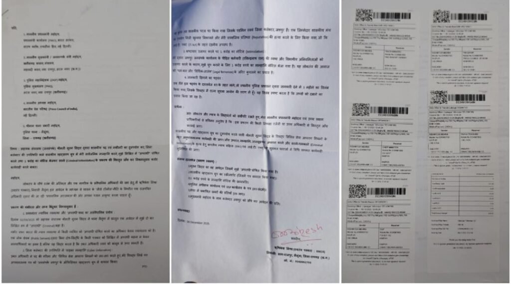 जसपुर,,जनसंपर्क अधिकारी ने पत्रकार को ‘अपराधी’ लिखकर भेजा 1 करोड़ का नोटिस— PMO तक पहुंची शिकायत, FIR की मांग तेज