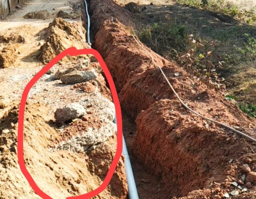 स्थानीय लोगों का आरोप है, कि पाइपलाइन डालने से पहले गड्ढा तो खोदा जा रहा है, लेकिन पाइप के नीचे निर्धारित बेस मटेरियल जैसे रेत या मुरम नहीं डाली जा रही है। निर्माण मानकों के अनुसार पाइप के नीचे समतल और मजबूत आधार आवश्यक होता है, जिससे भविष्य में पाइप के धंसने, टूटने या लीकेज की संभावना कम रहे।