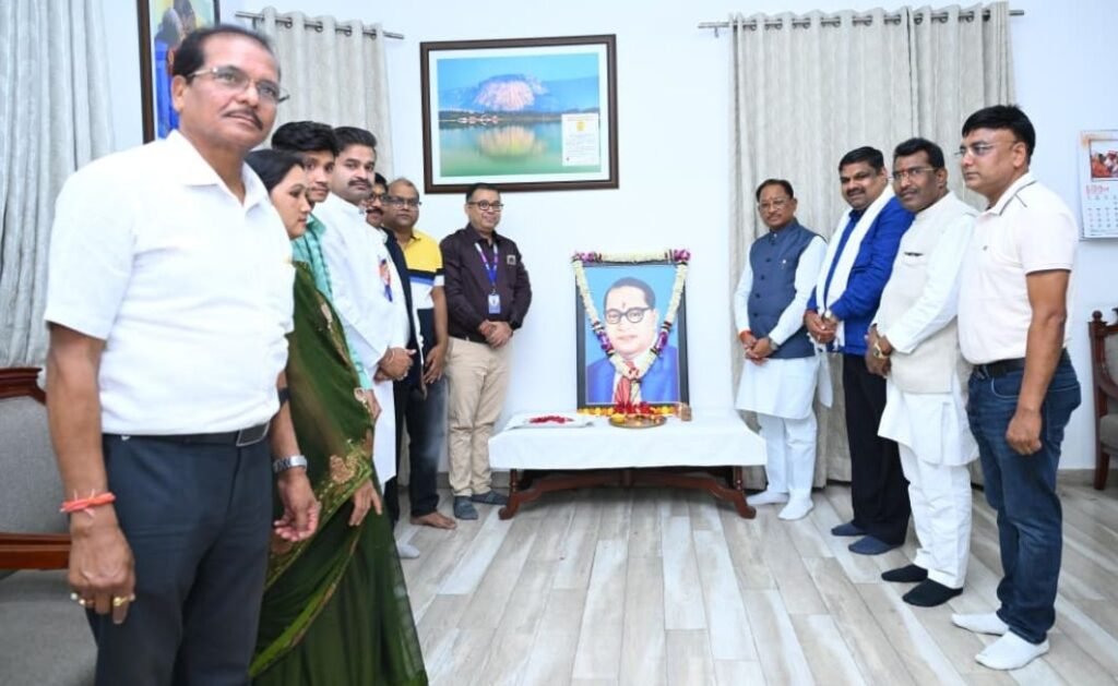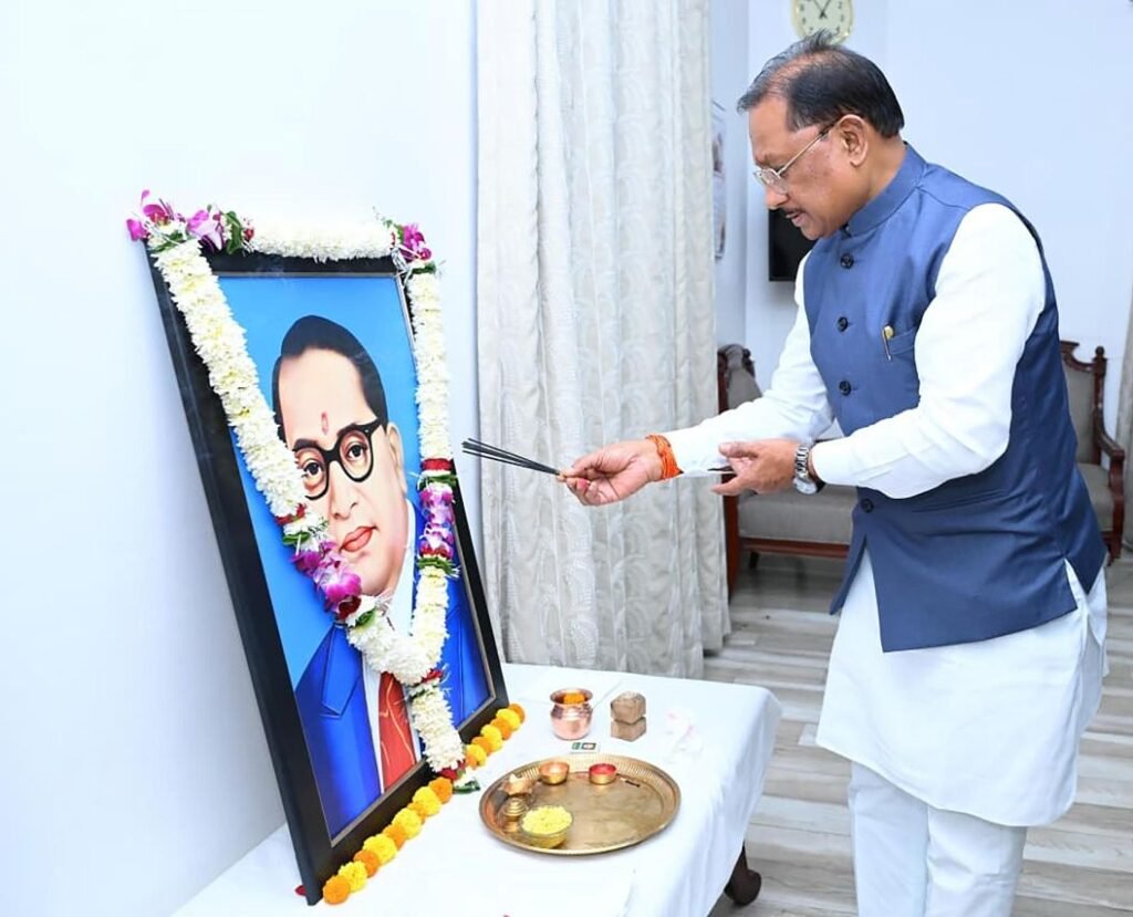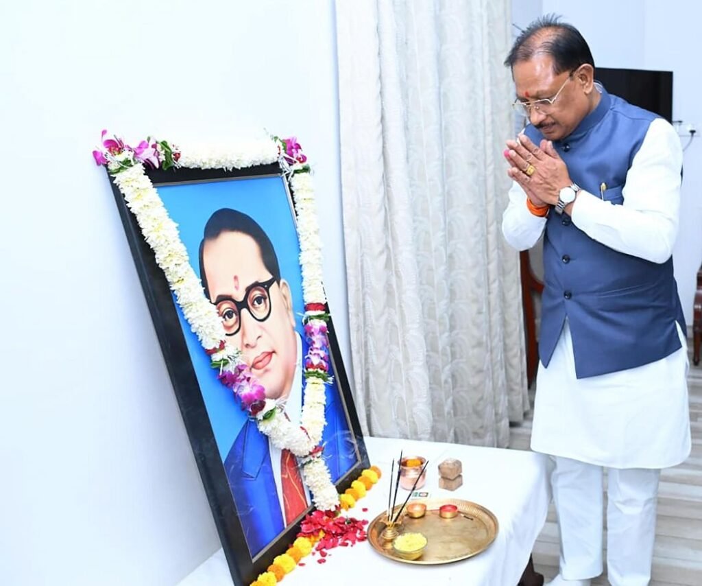 रायपुर, 14 अप्रैल 2026/ मुख्यमंत्री श्री विष्णु देव साय ने आज यहाँ अपने निवास कार्यालय में भारत रत्न डॉ. भीमराव अम्बेडकर की जयंती पर उनके छायाचित्र पर पुष्प अर्पित कर उन्हें नमन किया। इस अवसर पर शिक्षा मंत्री श्री गजेंद्र यादव, विधायक श्री रोहित साहू एवं जनप्रतिनिधि उपस्थित रहे।