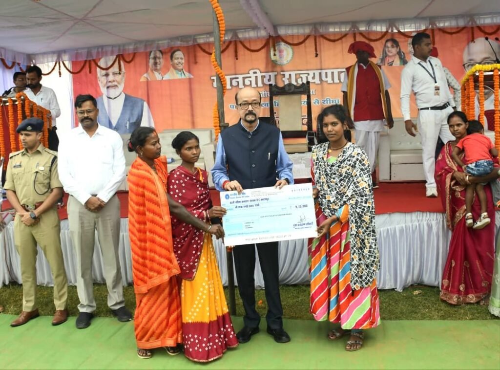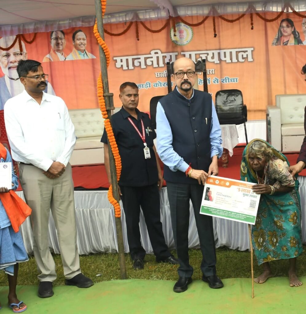 राज्यपाल श्री रमेन डेका ने कार्यक्रम के अंत में पहाड़ी कोरवा परिवारों को विभागीय योजना अंतर्गत सामग्री का वितरण किया। जिसमें पंचायत एवं ग्रामीण विकास विभाग के अंतर्गत 02 महिला स्व-सहायता समूहों को चेक, 05 हितग्राहियों को स्वच्छता किट, 01 हितग्राही को व्यक्तिगत शौचालय की स्वीकृति, 03 हितग्राहियों को बकरी शेड निर्माण की स्वीकृति राजस्व विभाग के अंतर्गत 03 हितग्राहियों को ऋण पुस्तिका, स्वास्थ्य विभाग के अंतर्गत 02 हितग्राहियों को वय वंदन कार्ड, 03 हितग्राहियों को आयुष्मान कार्ड, 01 हितग्राही को पोषण आहार किट, श्रम विभाग के अंतर्गत 01 हितग्राही को नोनी सषक्तिकरण योजना के अंतर्गत चेक, 04 हितग्राहियों को श्रम पंजीयन कार्ड, कृषि विभाग के अंतर्गत 04 हितग्राहियों को सरसों बीज तथा उद्यान विभाग के अंतर्गत 03 हितग्राहियों को टमाटर के पौधे का वितरण किया गया।